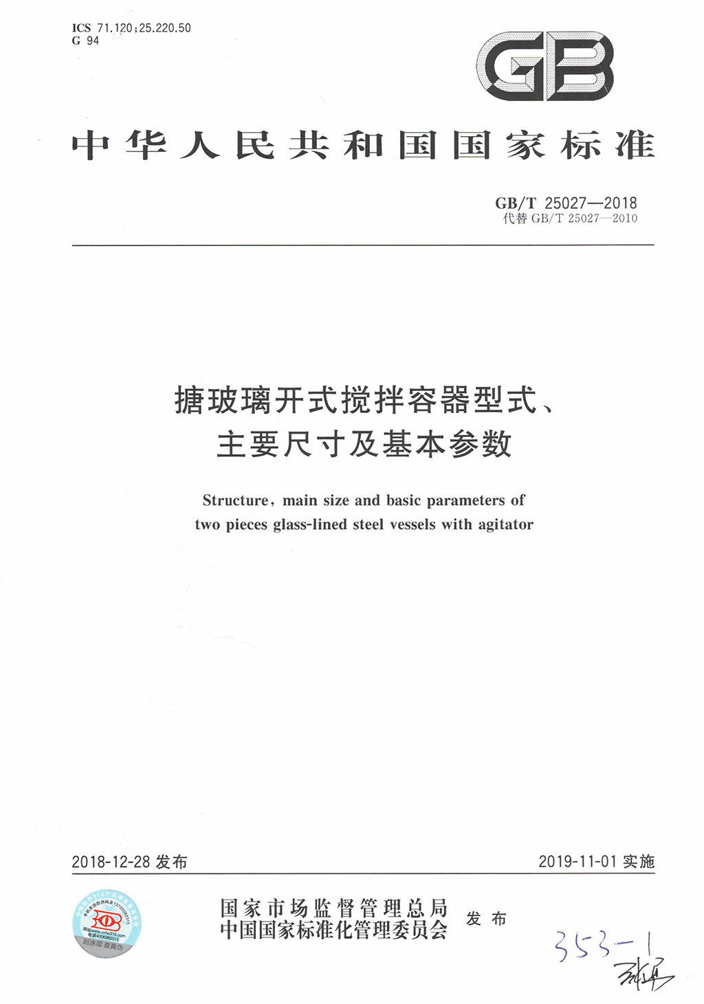 • 參與制定搪玻璃閉式攪拌容器國(guó)家標(biāo)準(zhǔn)